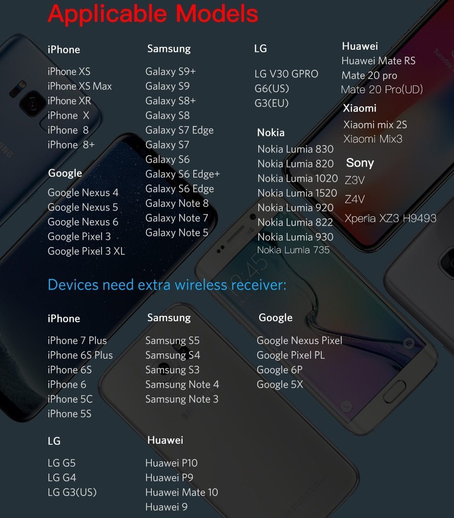 - Instant charging of mobile phones no need for cord use, automatic wireless charging.